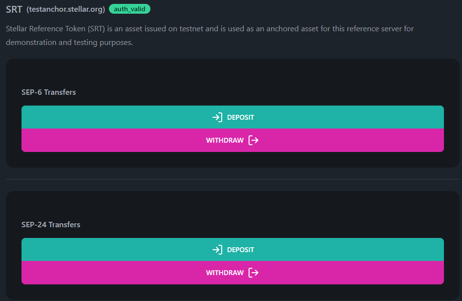Now that we have successfully authenticated our user with an asset anchor, we can display and process the various transfer capabilities of the anchor in question. We'll begin with SEP-6, since that will lay the groundwork for SEP-24 to follow.