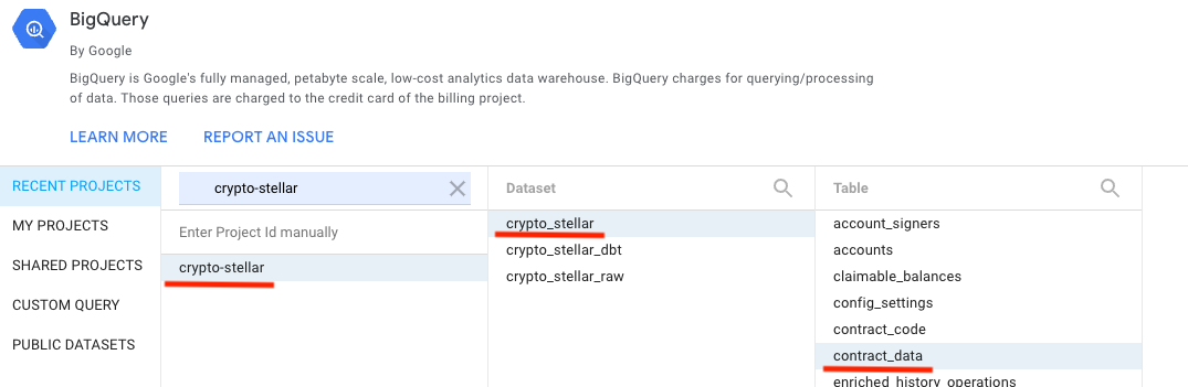 1. Select BigQuery and choose CUSTOM QUERY and select your desired Billing Project where the query will be charged