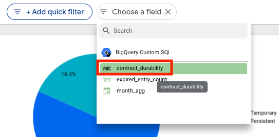 1. Click +Add quick filter to apply a filter throughout the whole report